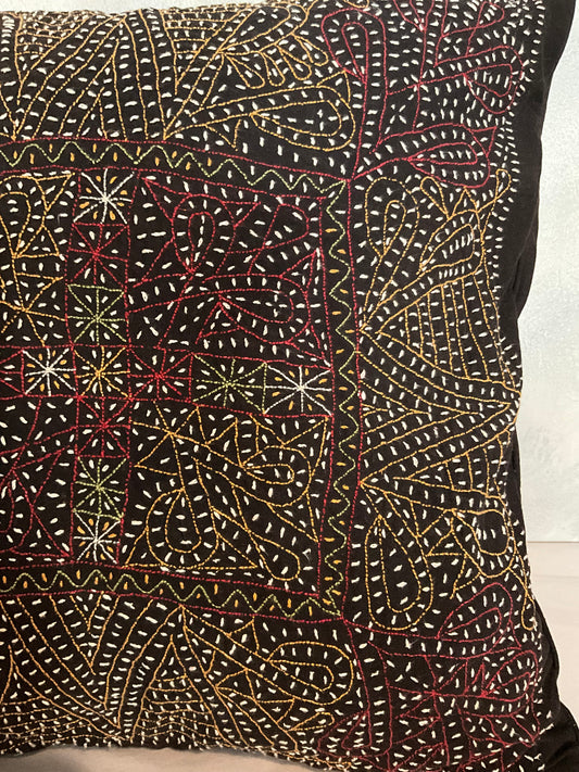 Rabari Hand Stitched Pillow Black