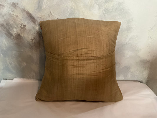Hand woven Silk Hand Embroidered Pillow Cream and Brown