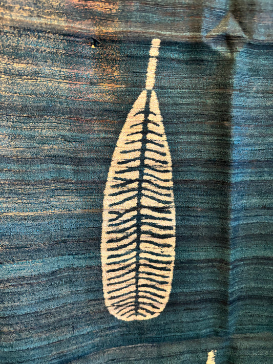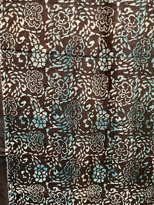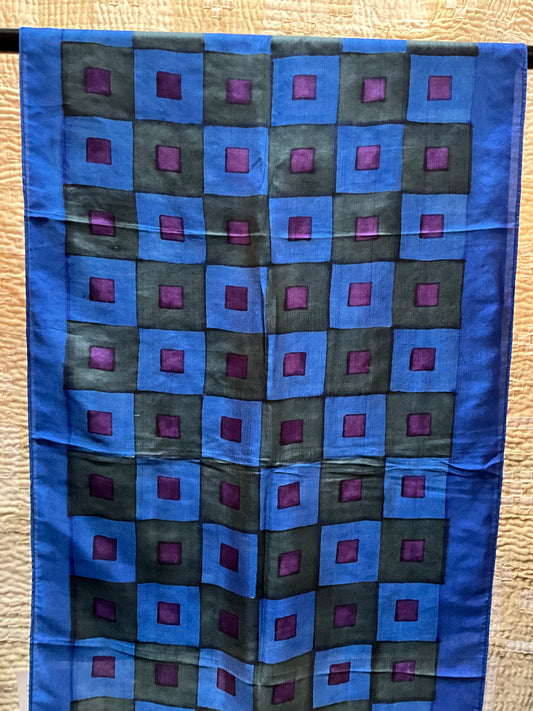 Silk scarf in Block Printed browns and Blues