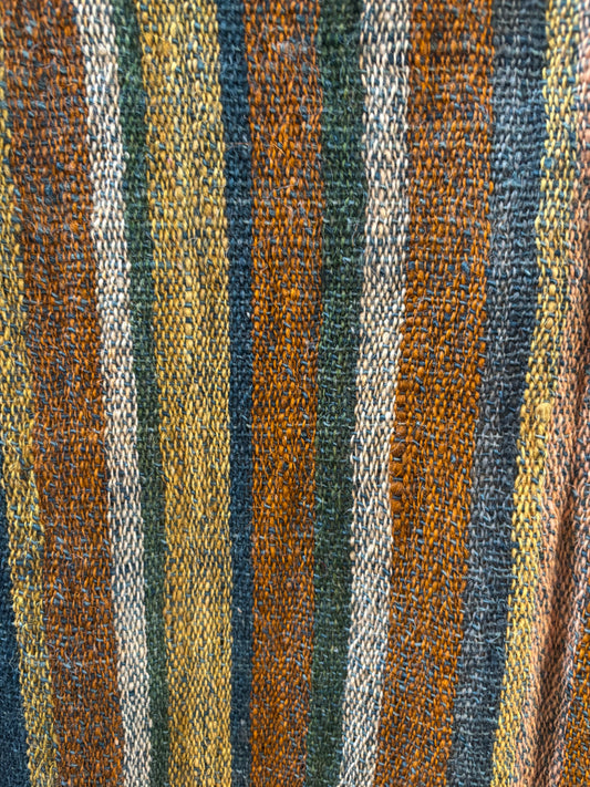 Handwoven Naturally Dyed Sheep’s Wool Scarf in Blues and Oranges