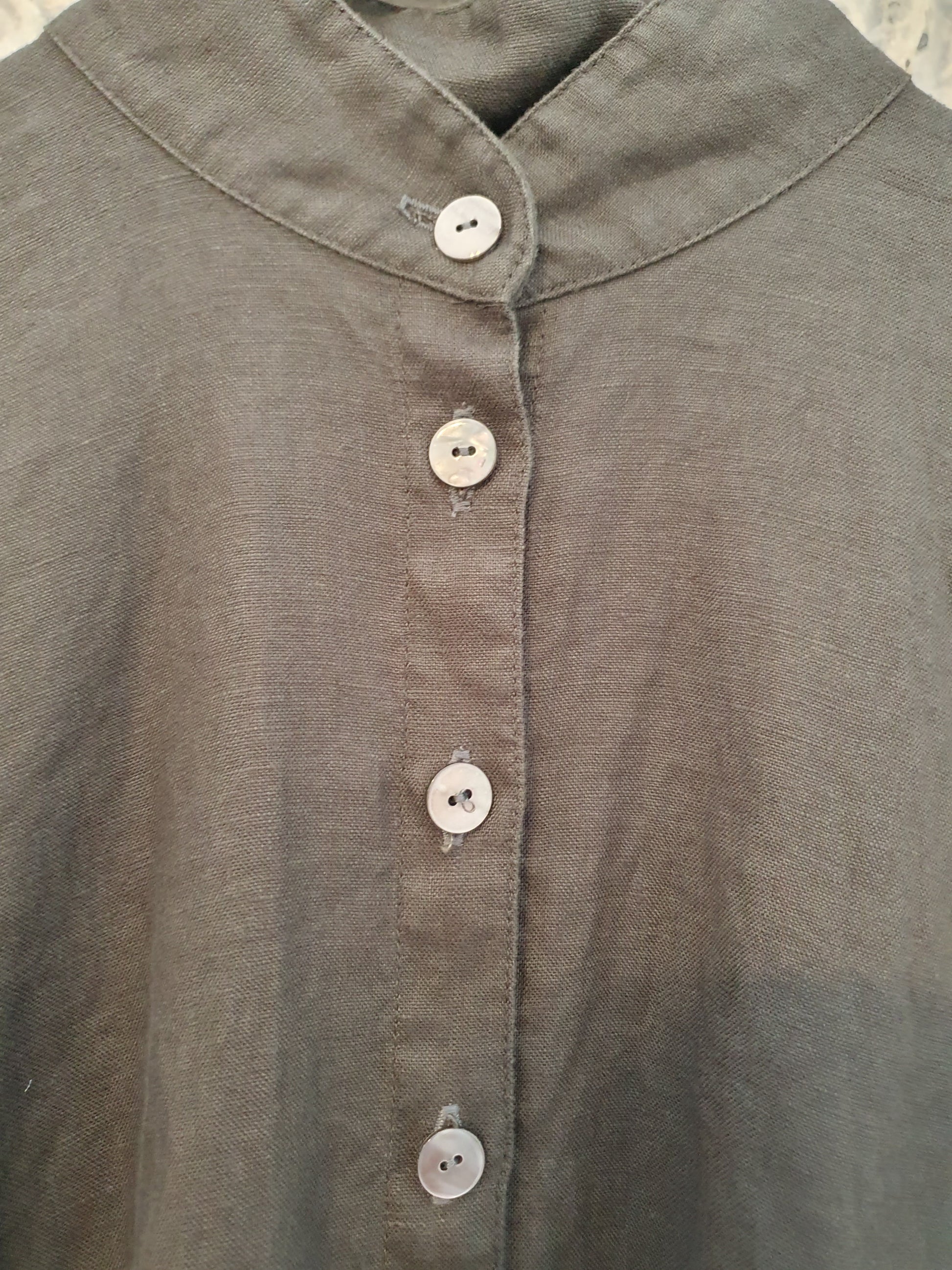 This fabulous shirt is made from 220gsm linen and is very oversized, It has long sleeves with shell buttons and it drapes down the sides.