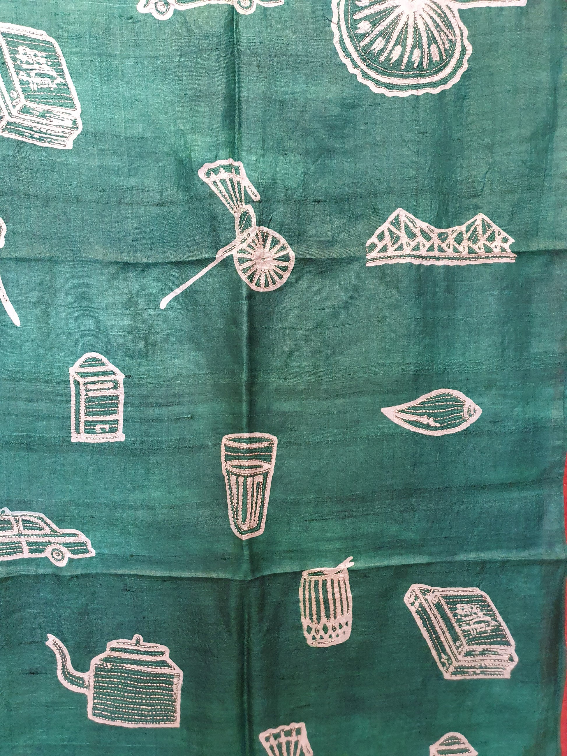 This beautiful scarf has been hand stitched by talented artisans in Kolkata India. The stitching on the motifs is beautiful.
