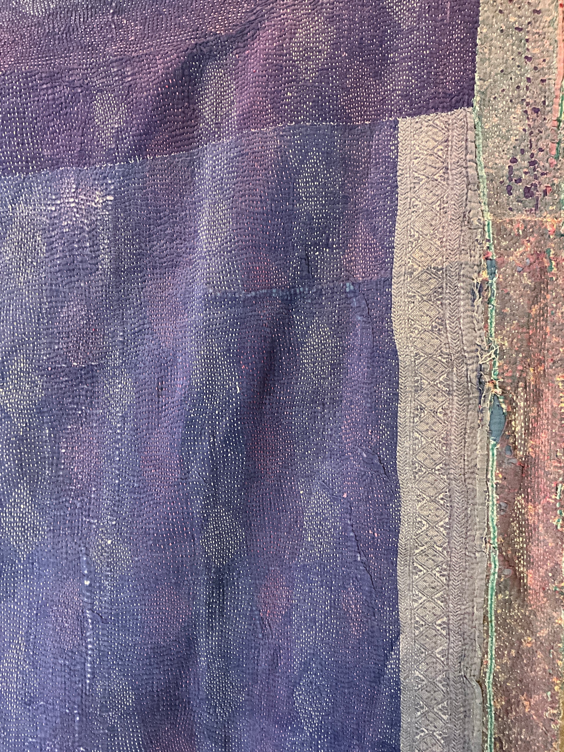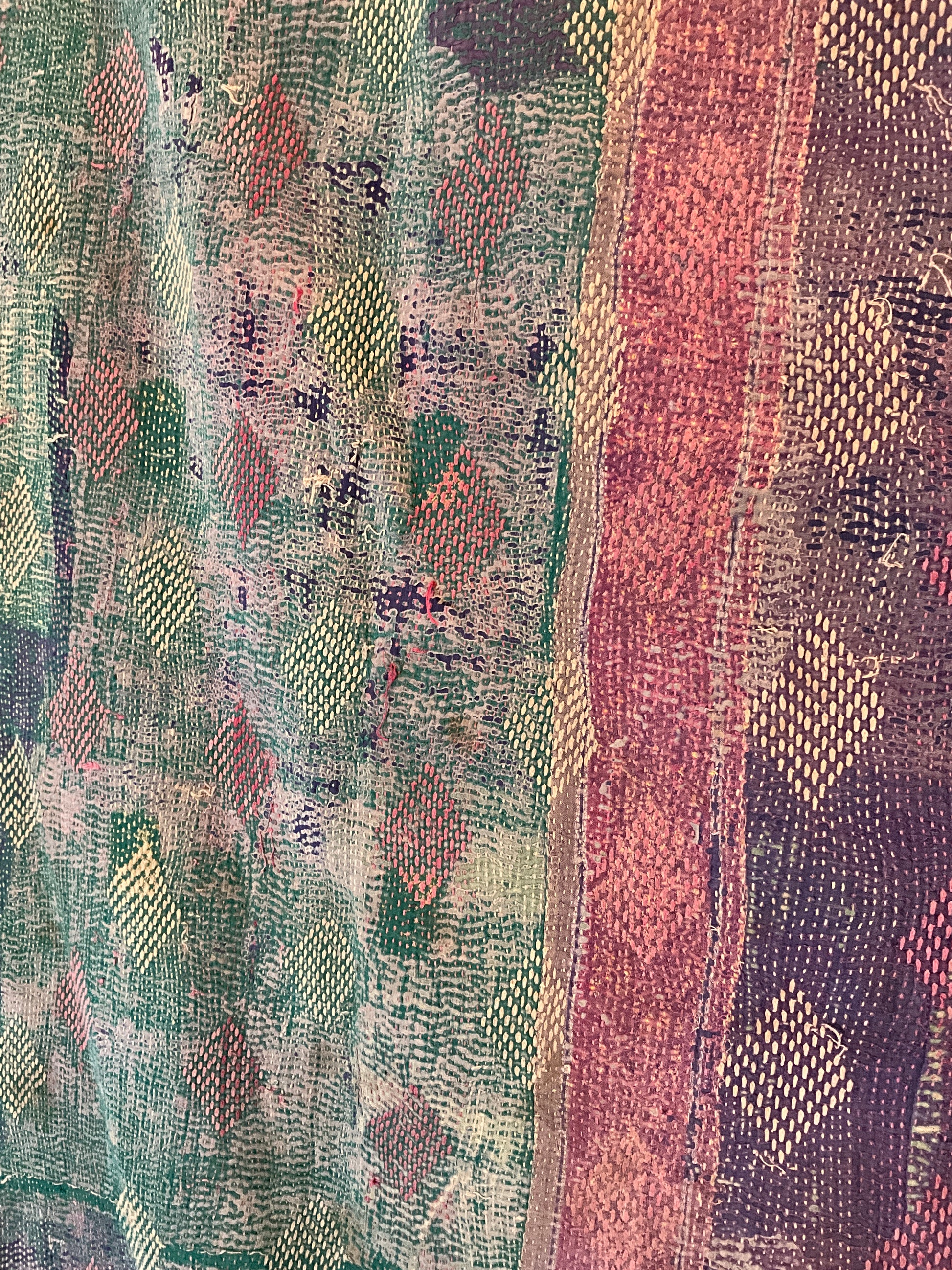 Vintage kantha quilts are made from hand stitching saris and fabric offcuts together which result in beautiful textures and colours. As they wear more pieces are added making them almost like an abstract painting. Some of these pieces can be up to 50 years old.