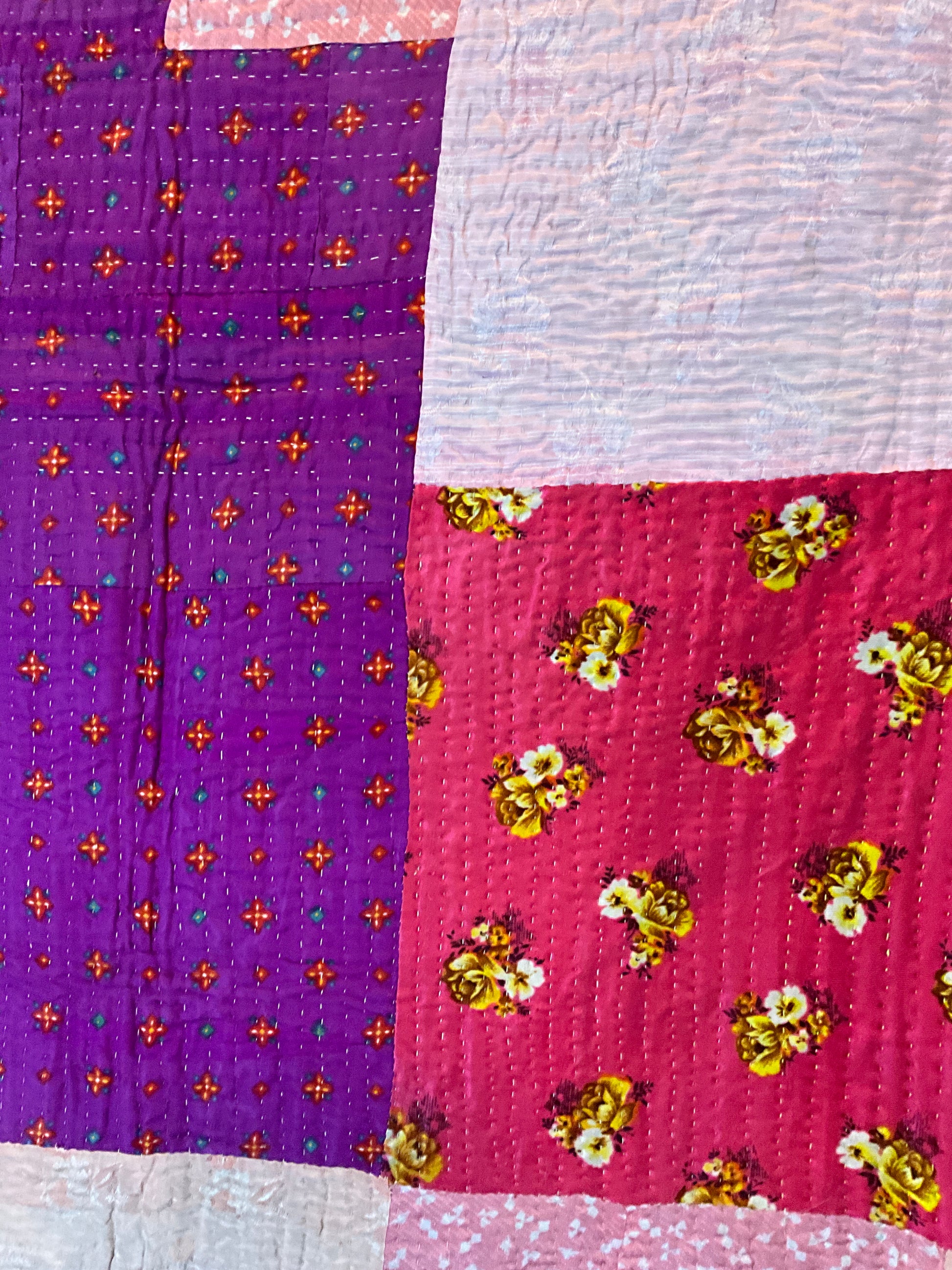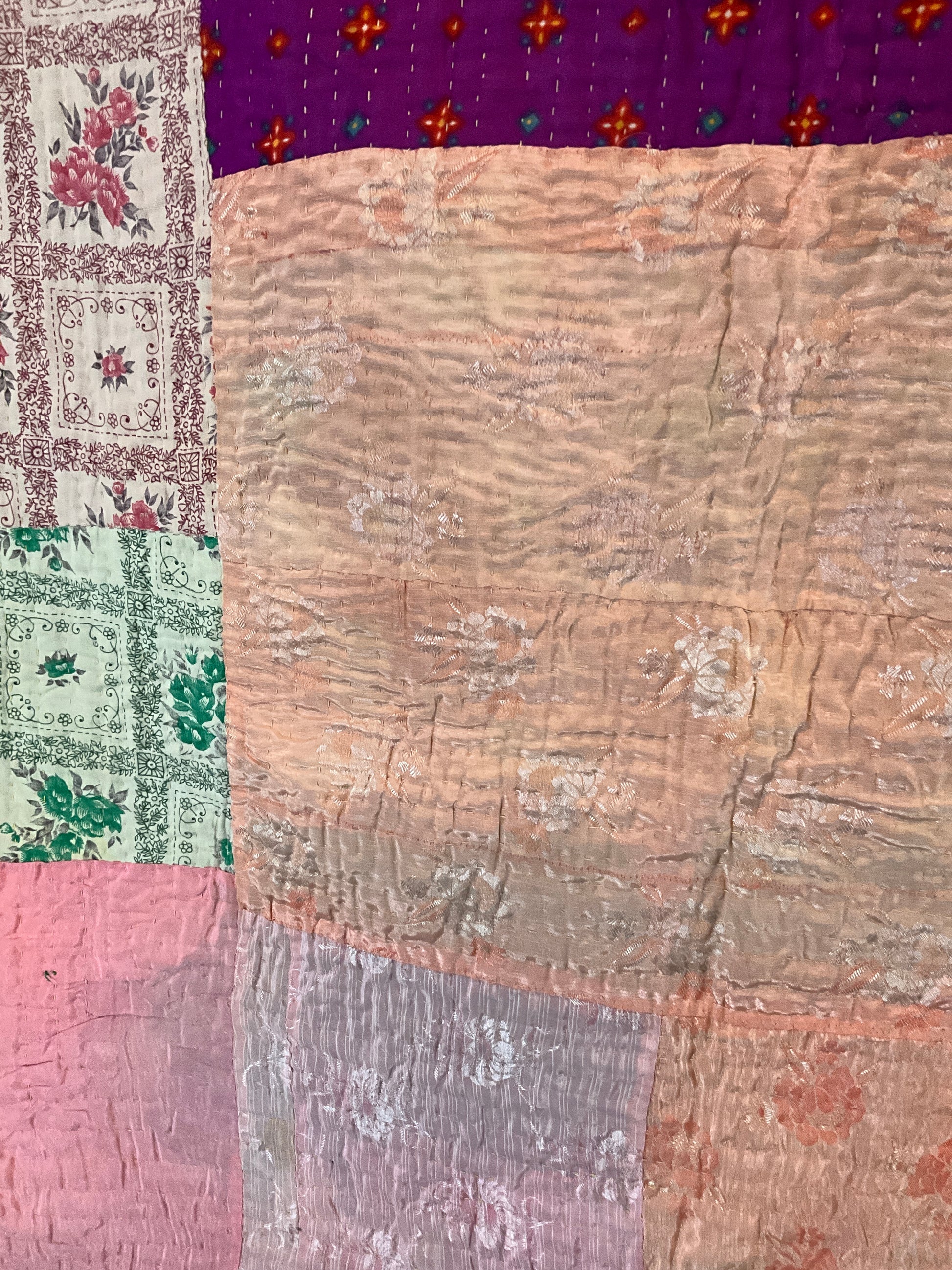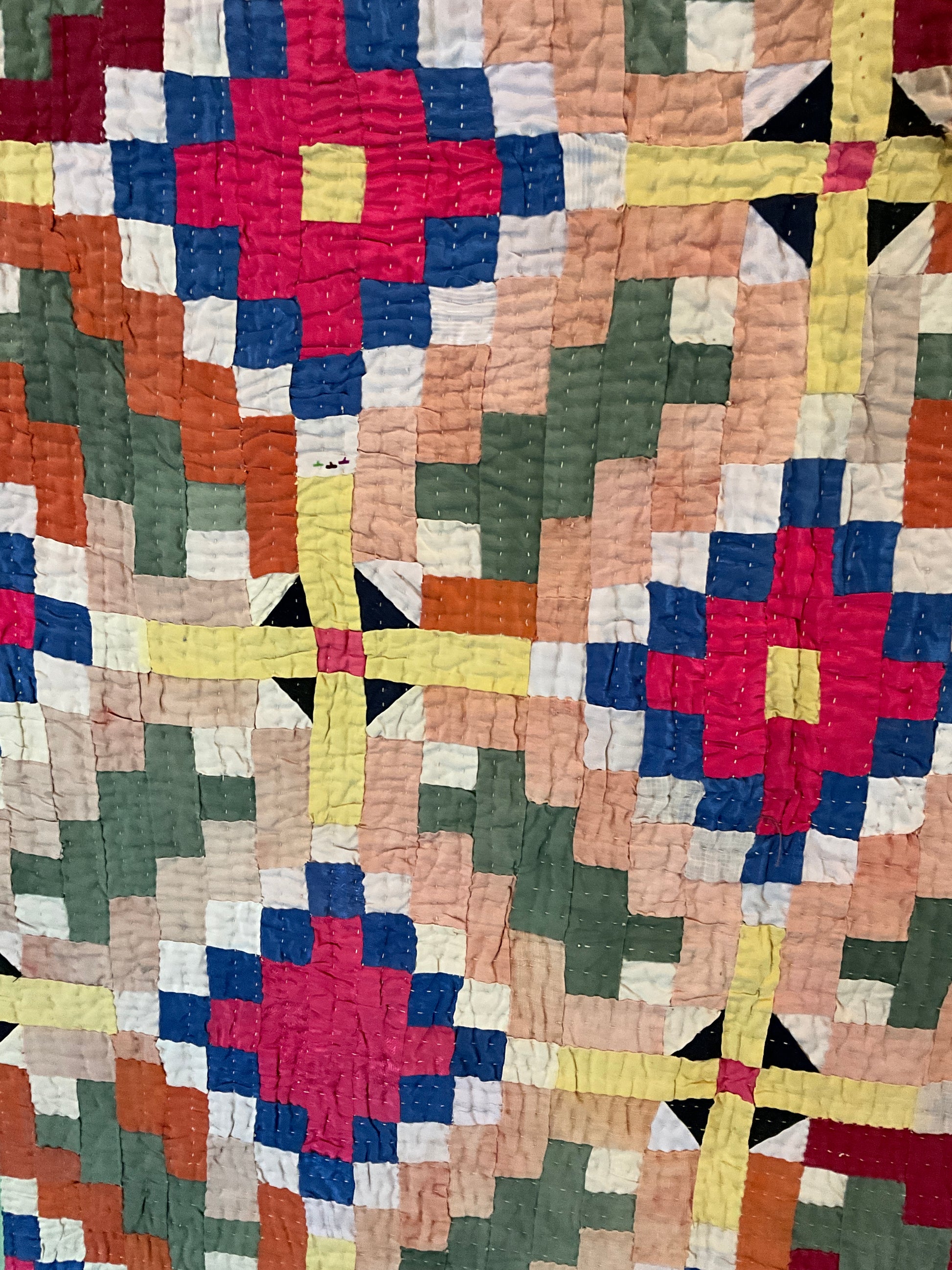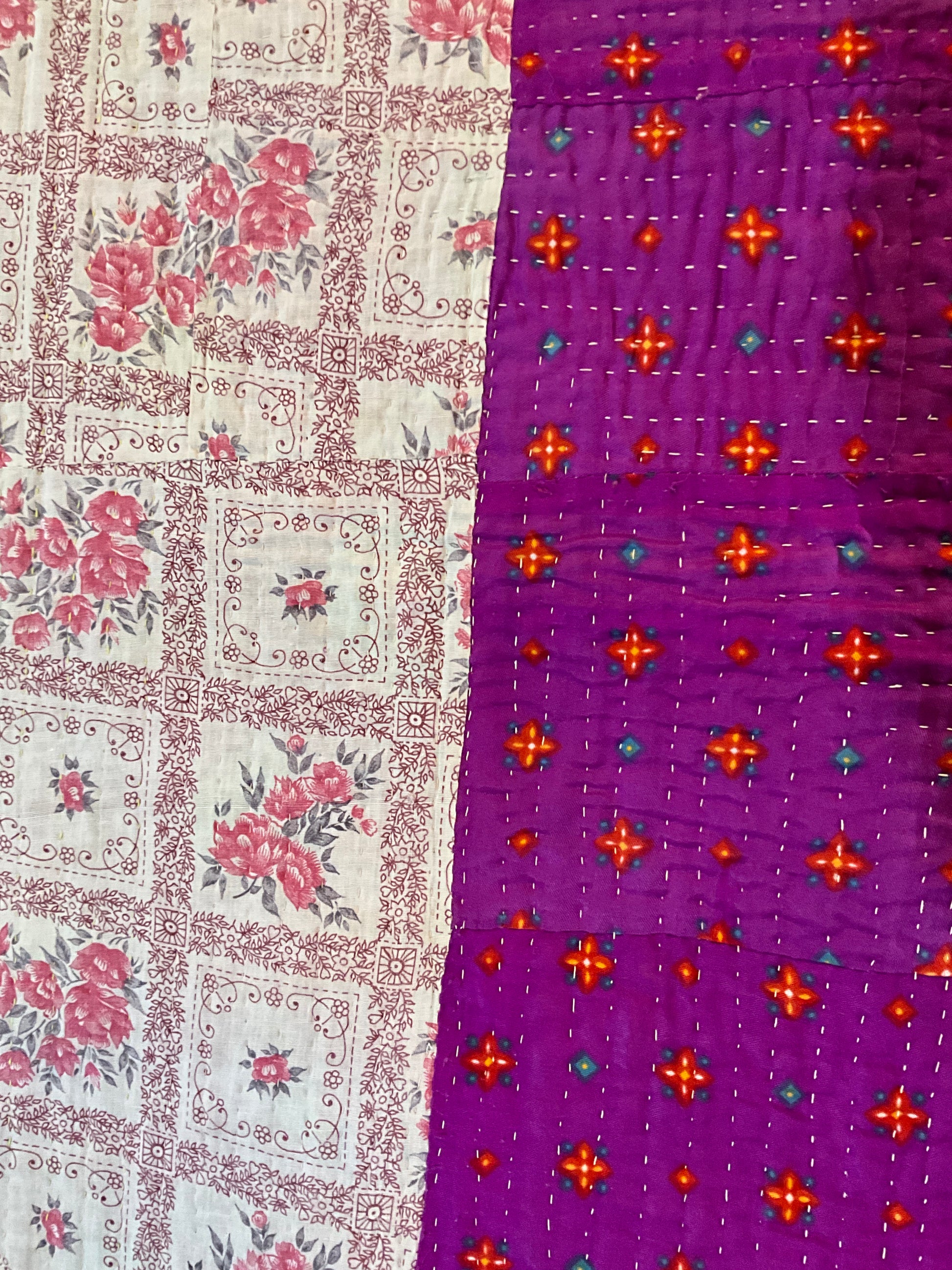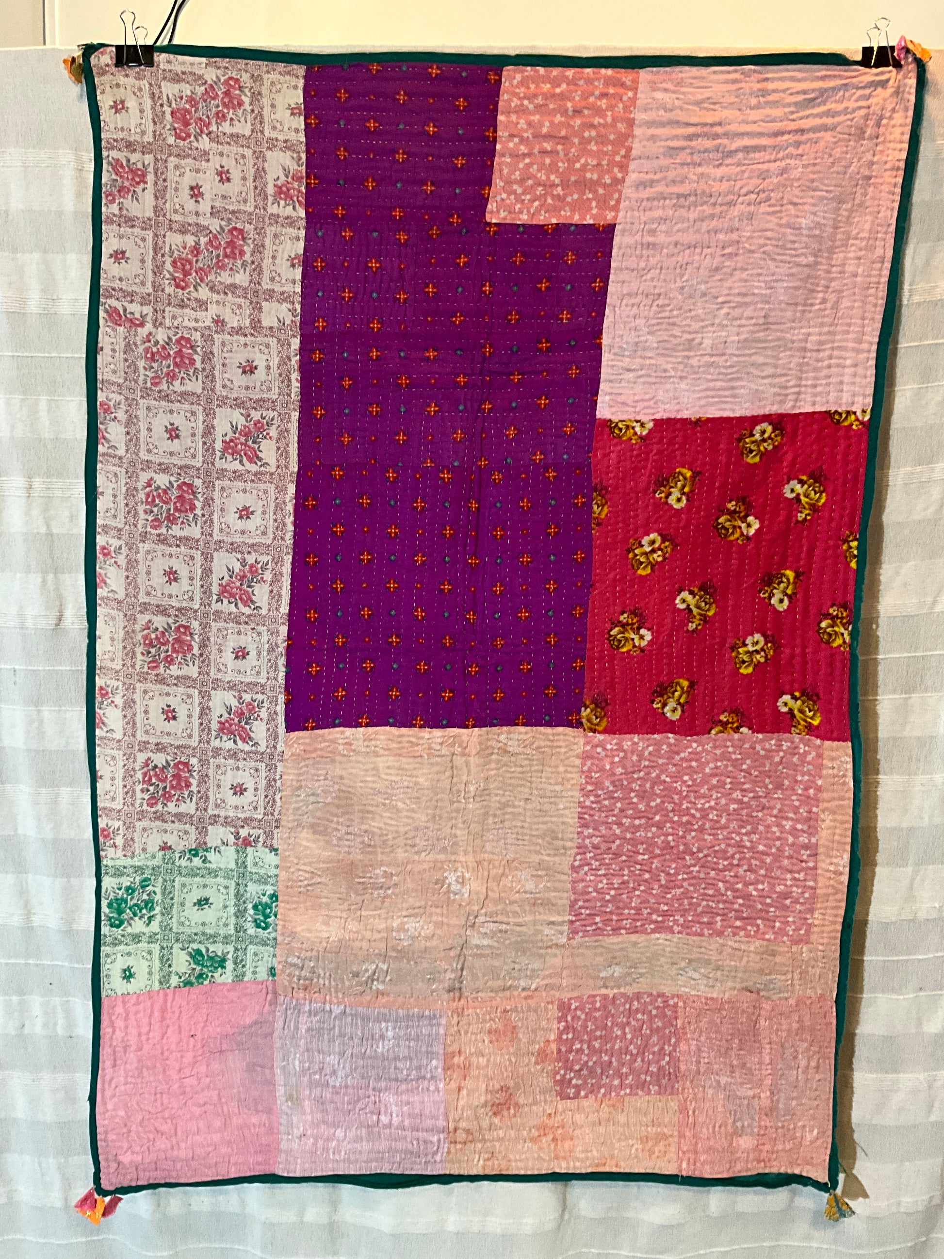 A striking vintage quilt made by the Rabari women of Gujurat, India. Completely handstitched using traditional designs. It would make a great throw, end of bed quilt or wall hanging.