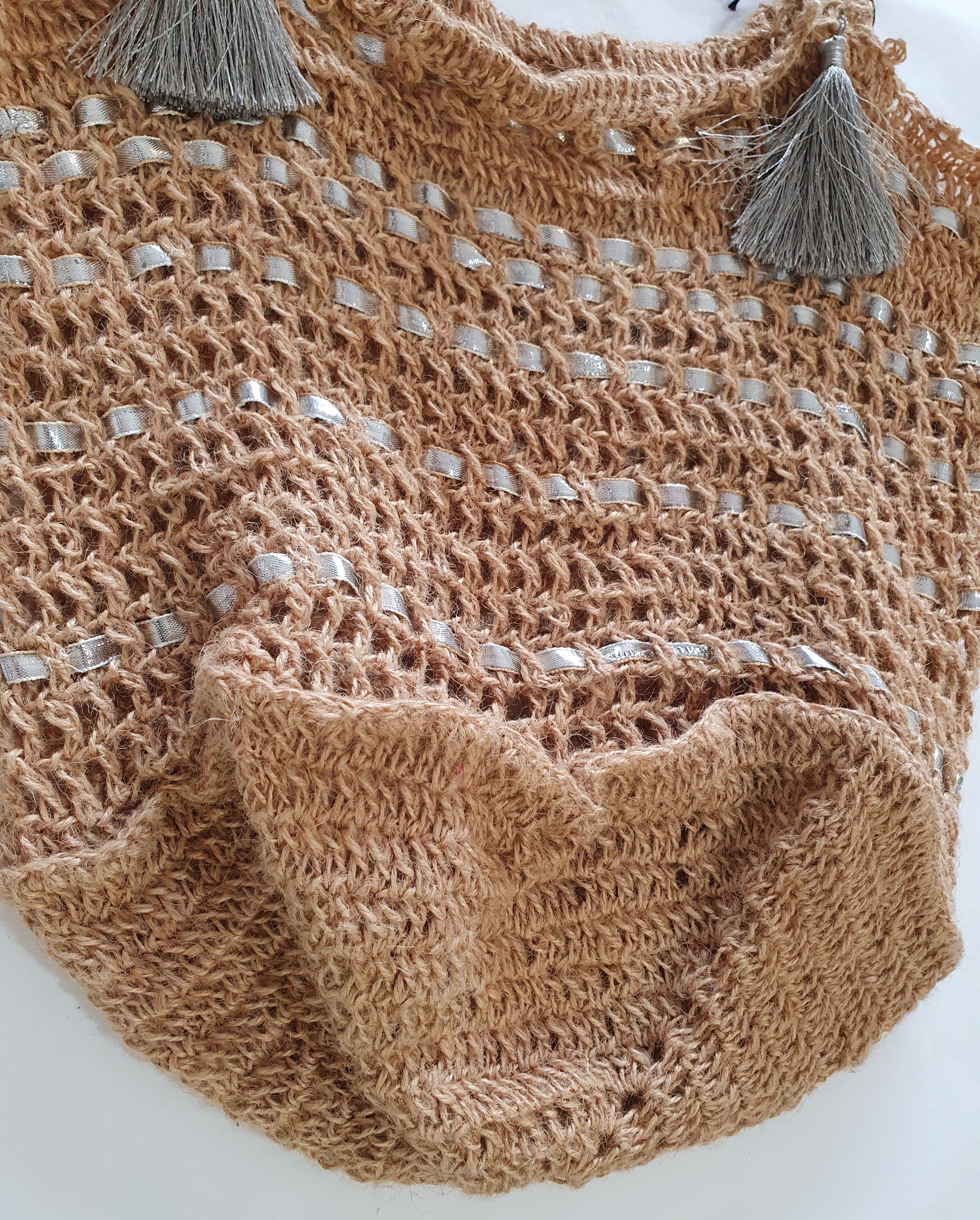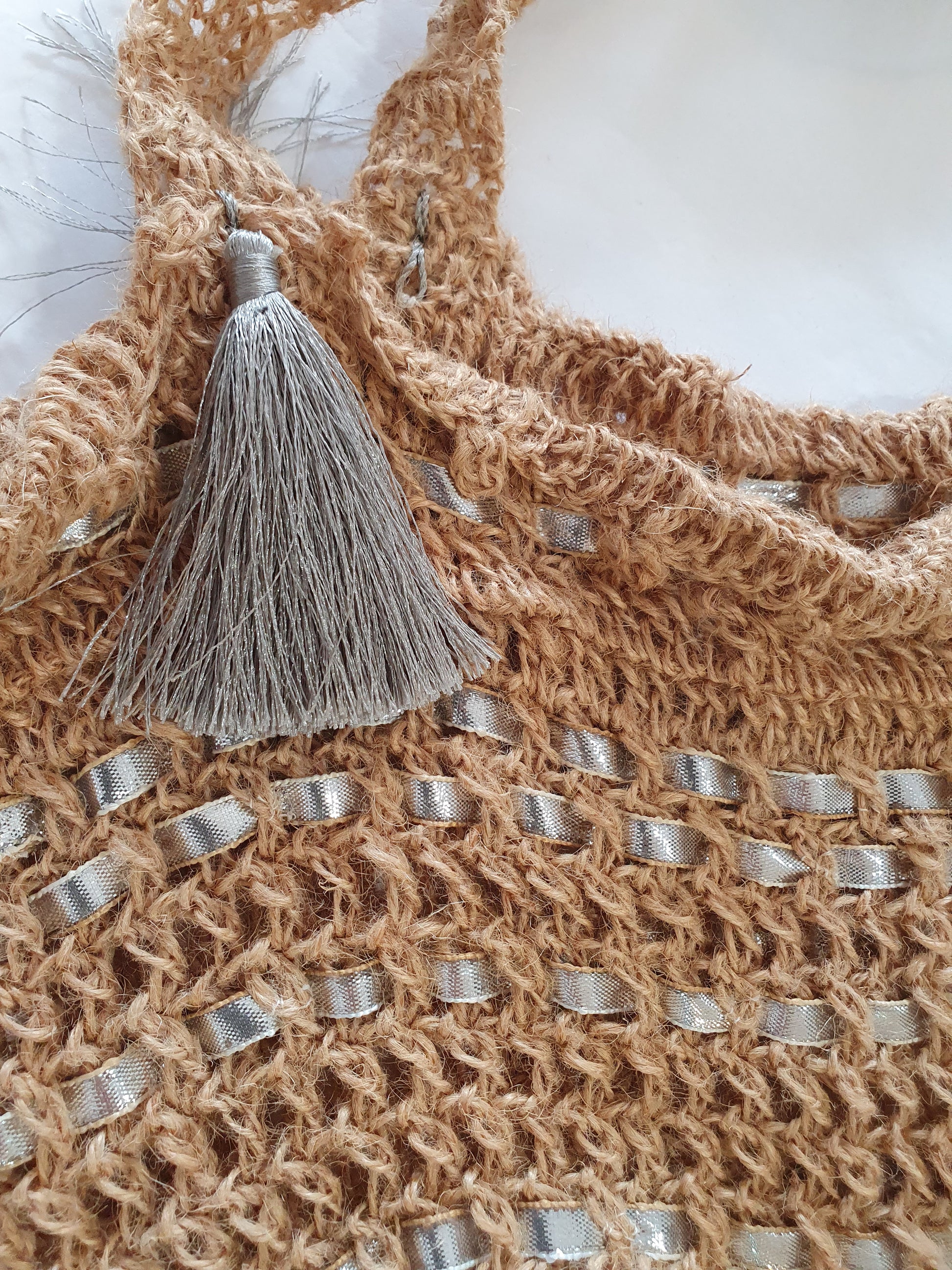 This beautiful bag has been handcrafted using wild Himalayan hemp and has blue tassels and it has been woven through the bag. These bags are one off works of art by artist Sonia Deol India.